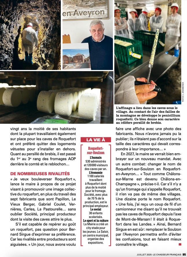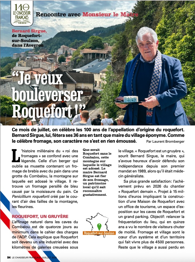 Dans le Chasseur Français de juillet, il expliquait vouloir se présenter aux prochaines élections municipales de mars 2026. L’homme était tenace avec un caractère bien trempé. Même face au N°1 mondial du fromage, Lactalis, propriétaire de Roquefort Société, il ne s’en laissait pas conter. Il réfléchissait à son prochain combat : faire rebaptiser Roquefort-sur-Soulzon en Roquefort-en-Aveyron, façon de bien rappeler au grand public le lien entre deux caractères : le Roquefort et l’Aveyron.
