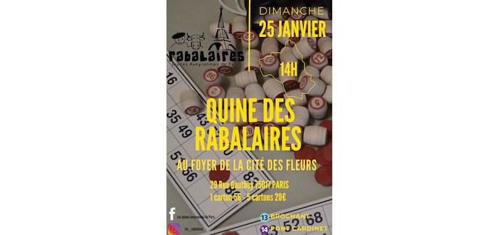 Quine des Rabalaïres le 25 janvier 2025 à 14h au Foyer de la Cité des Fleurs